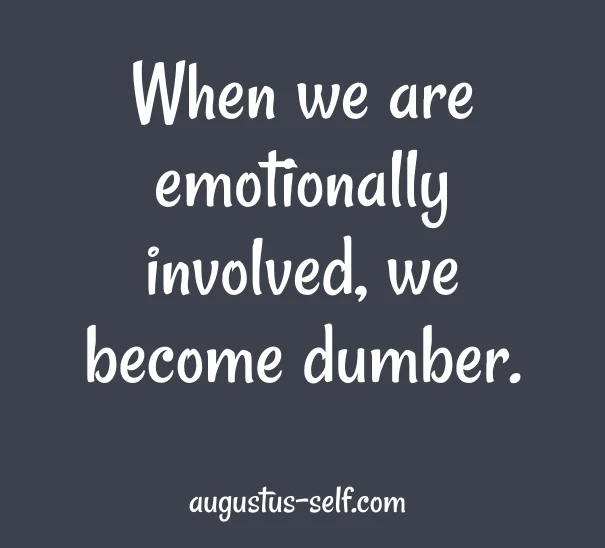 - When we are emotionally involved, we become dumber. - We have all experience this! Saying things we shouldn’t have said when we were angry or staying in a relationship much longer than we should have. We are much better evaluators when we are not the one IN the situation. Before you let yourself get emotionally get involved, make sure you are logically protecting yourself first.